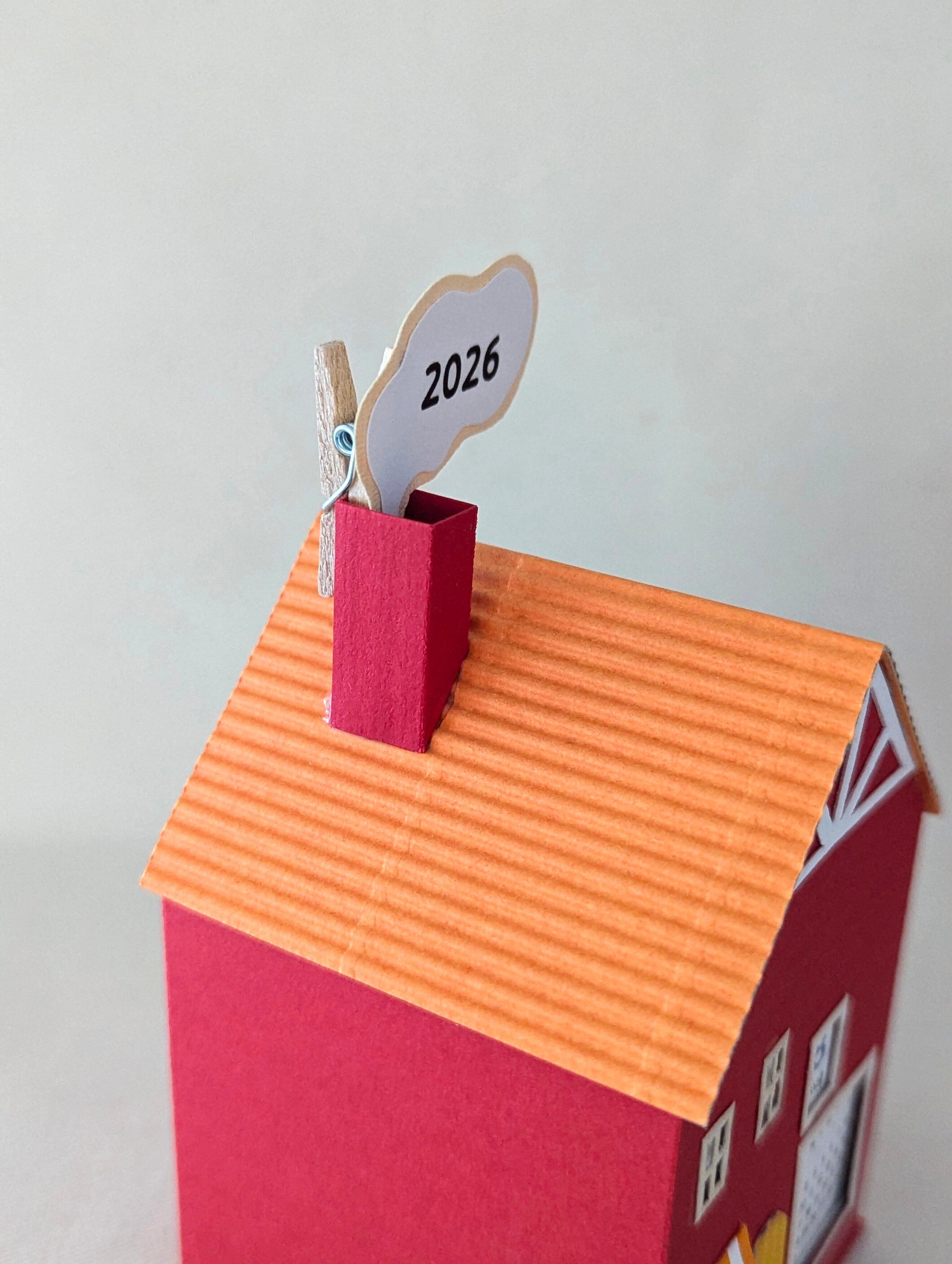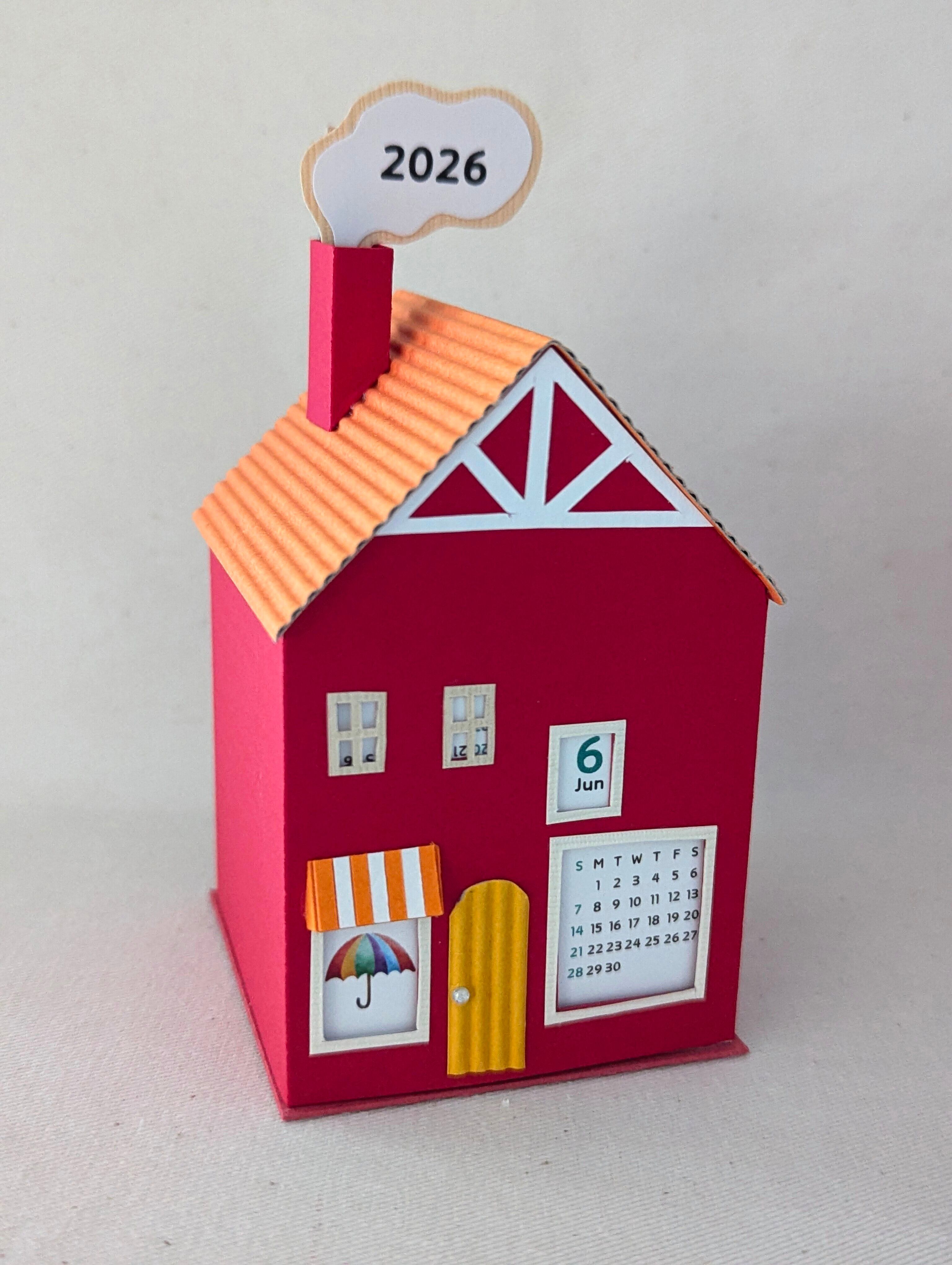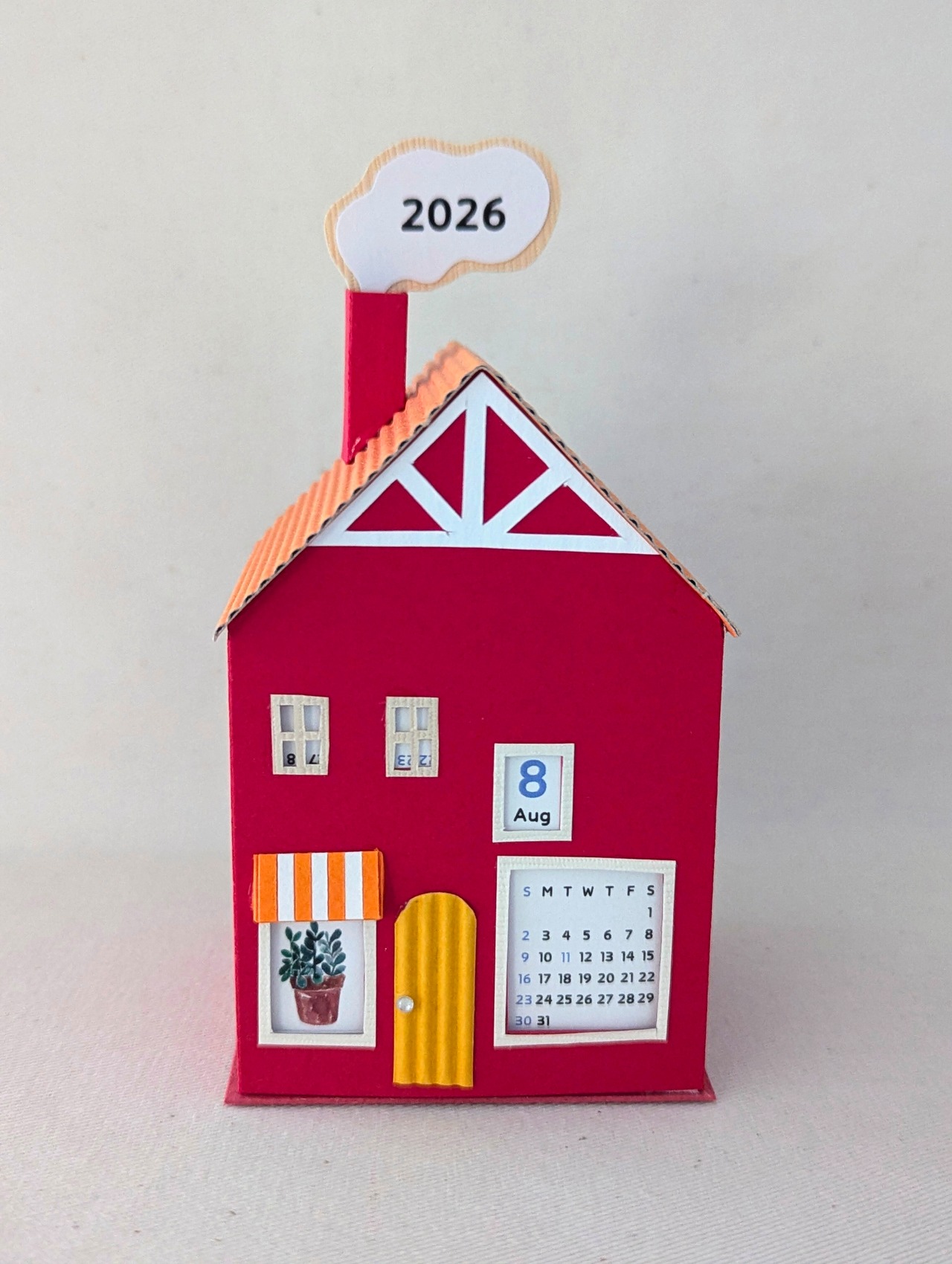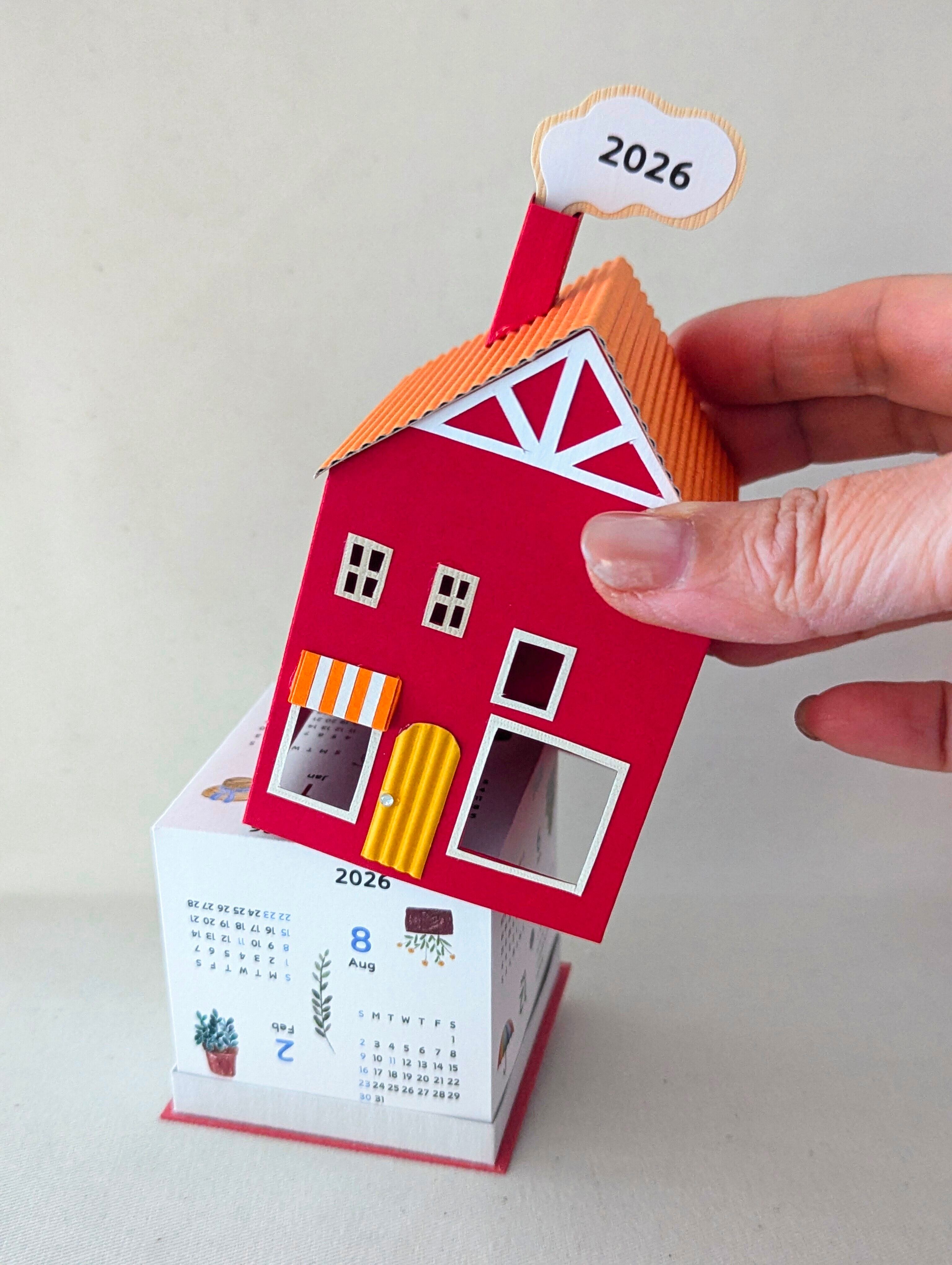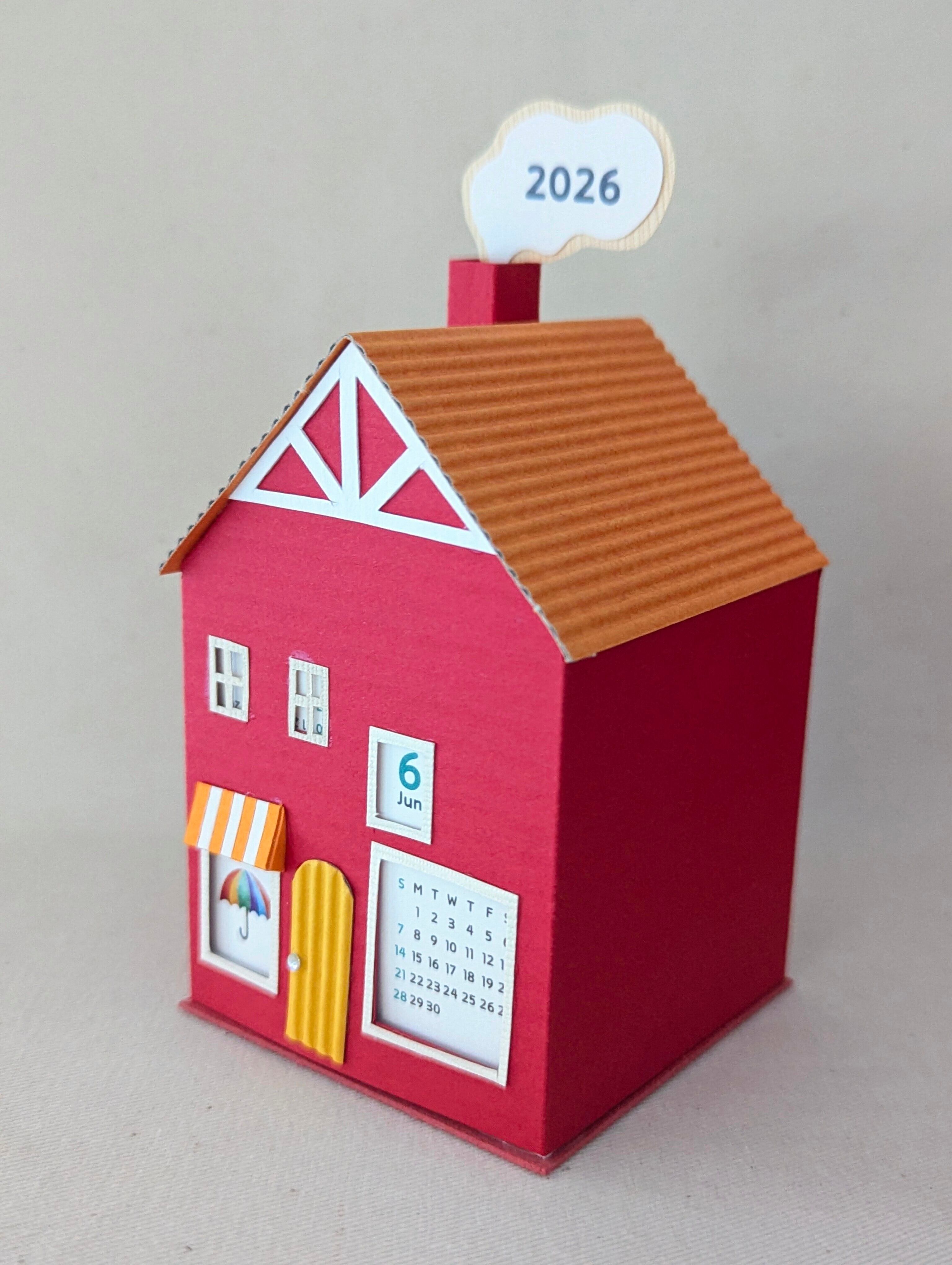 小さな街のペーパークラフトカレンダー2026〜選べる3種のミニハウス〜 赤-Aタイプ