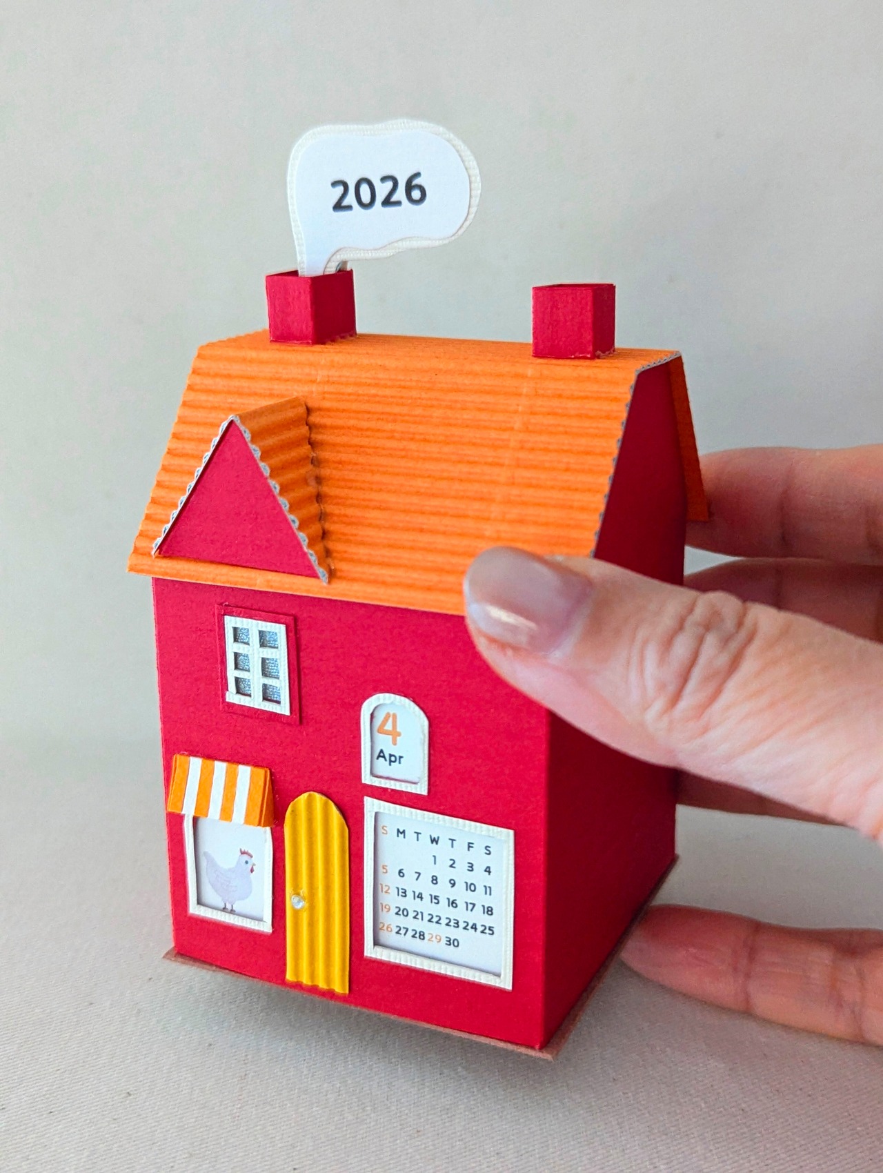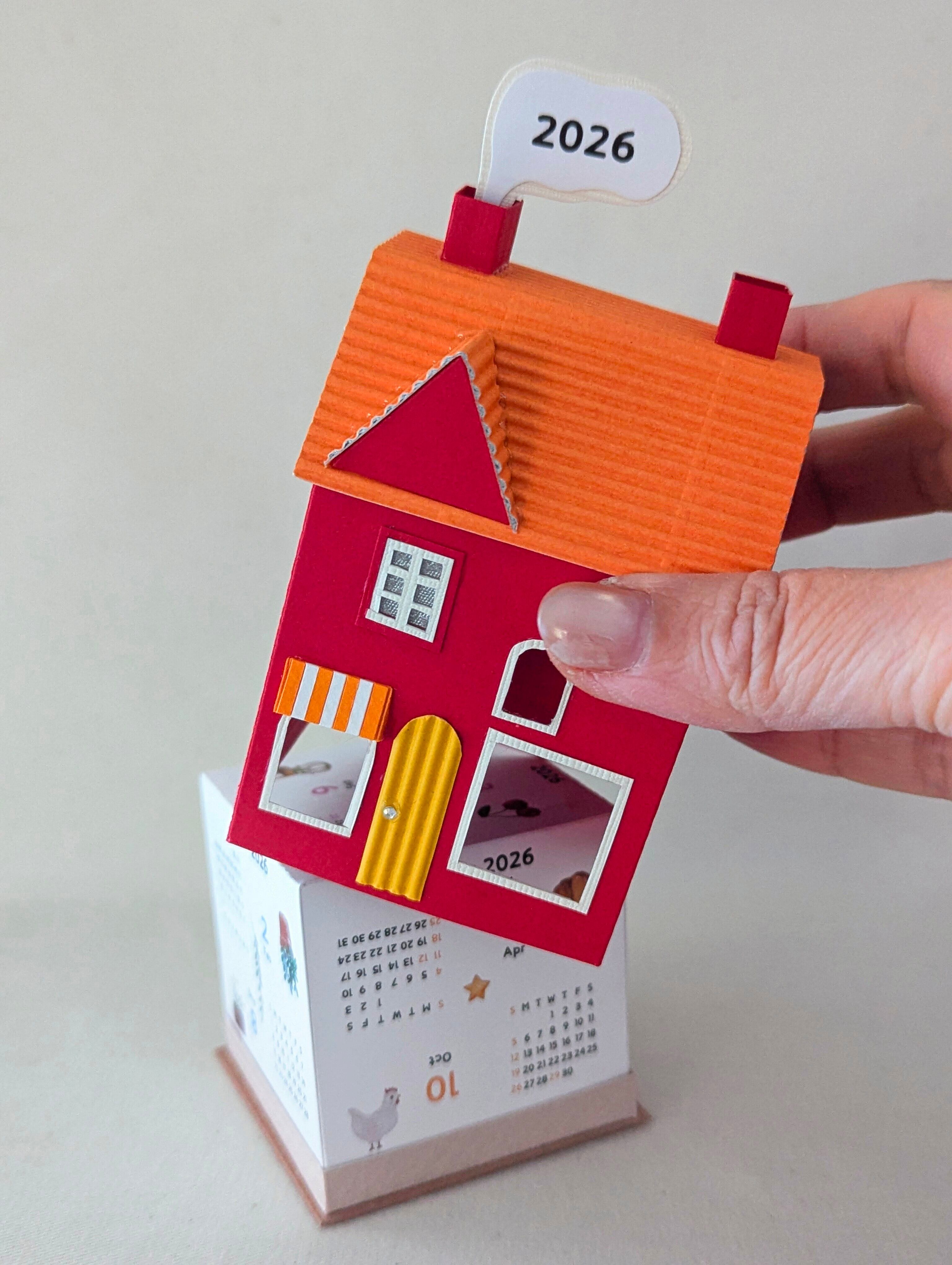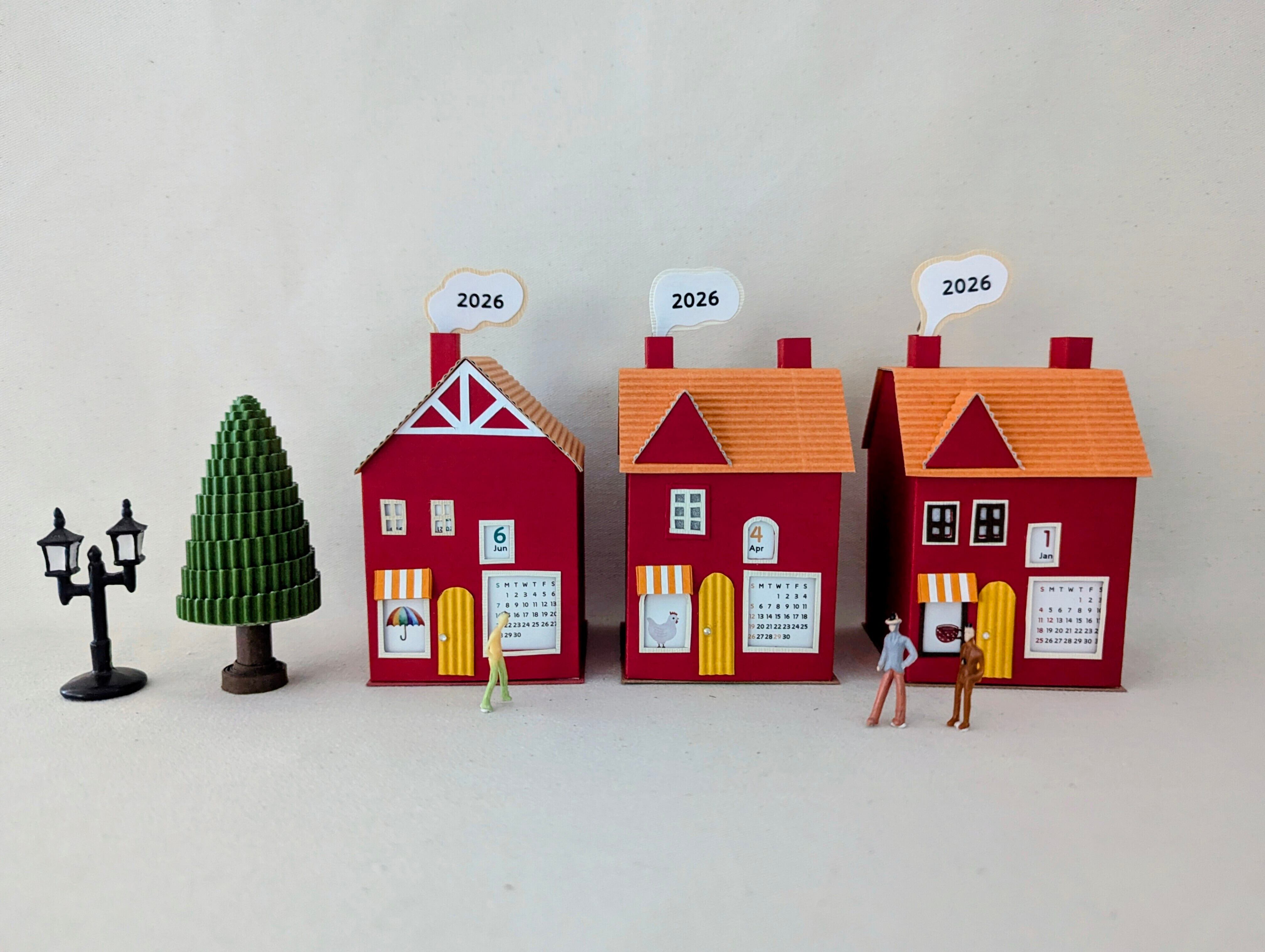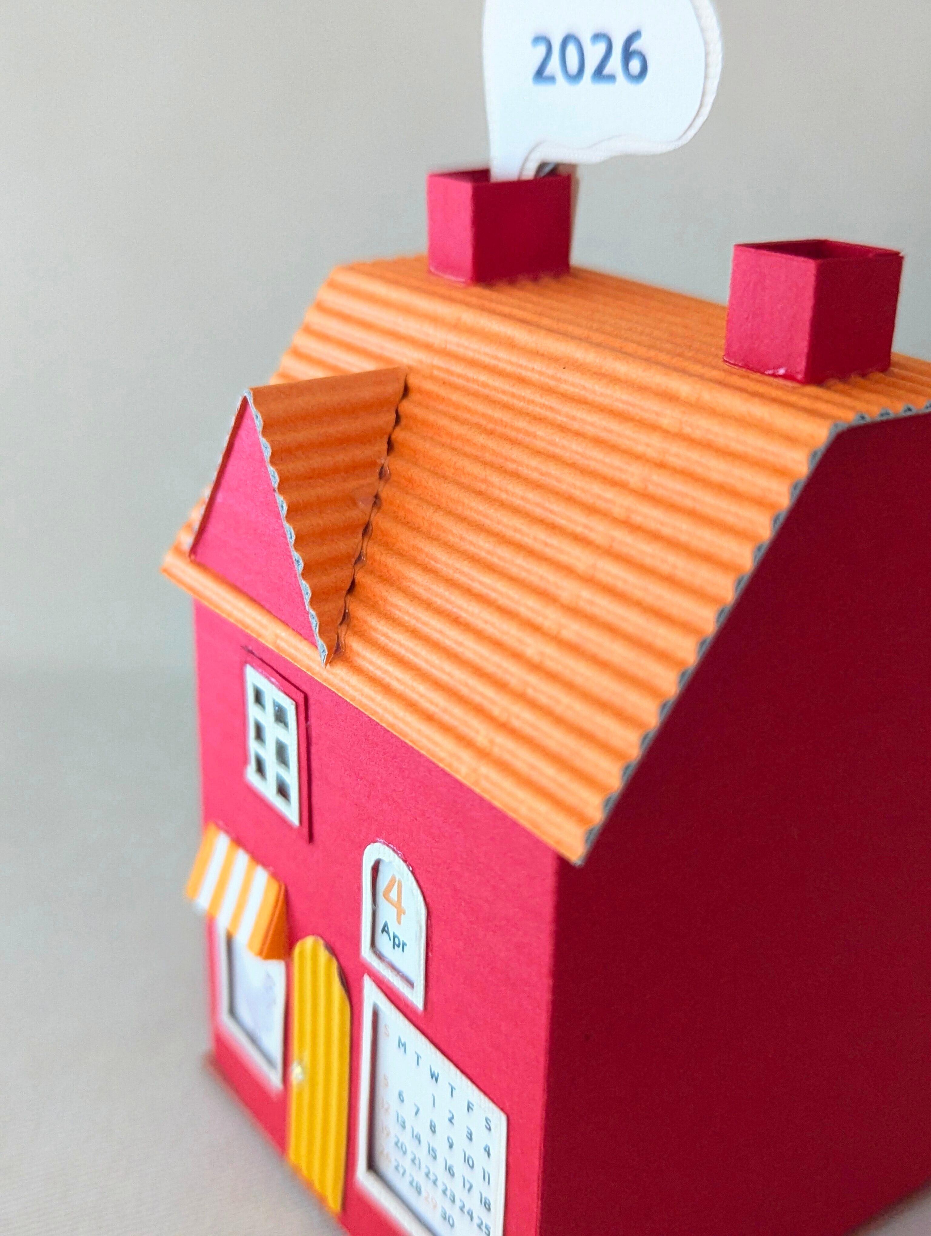 小さな街のペーパークラフトカレンダー2026〜選べる3種のミニハウス〜 赤-Bタイプ