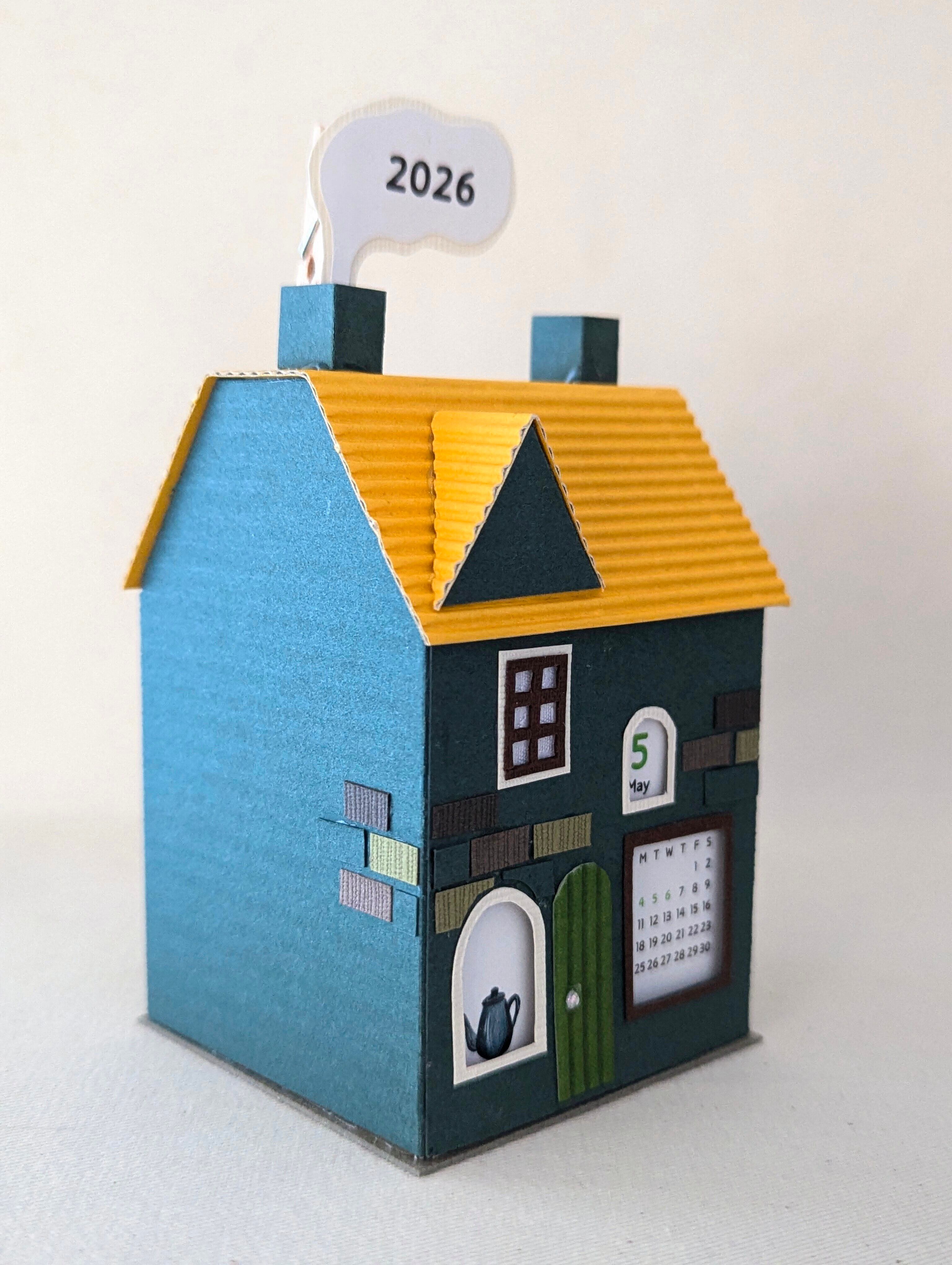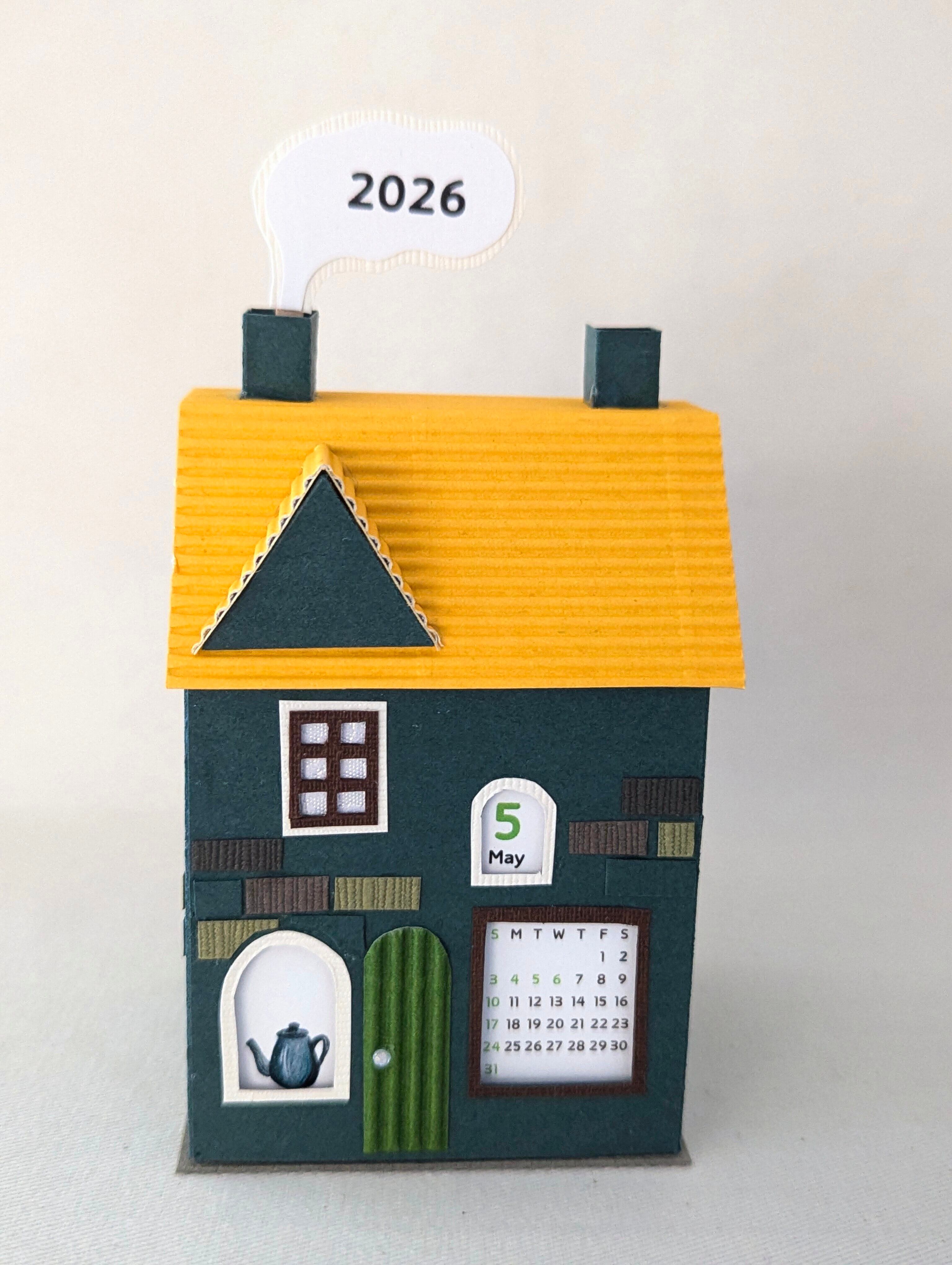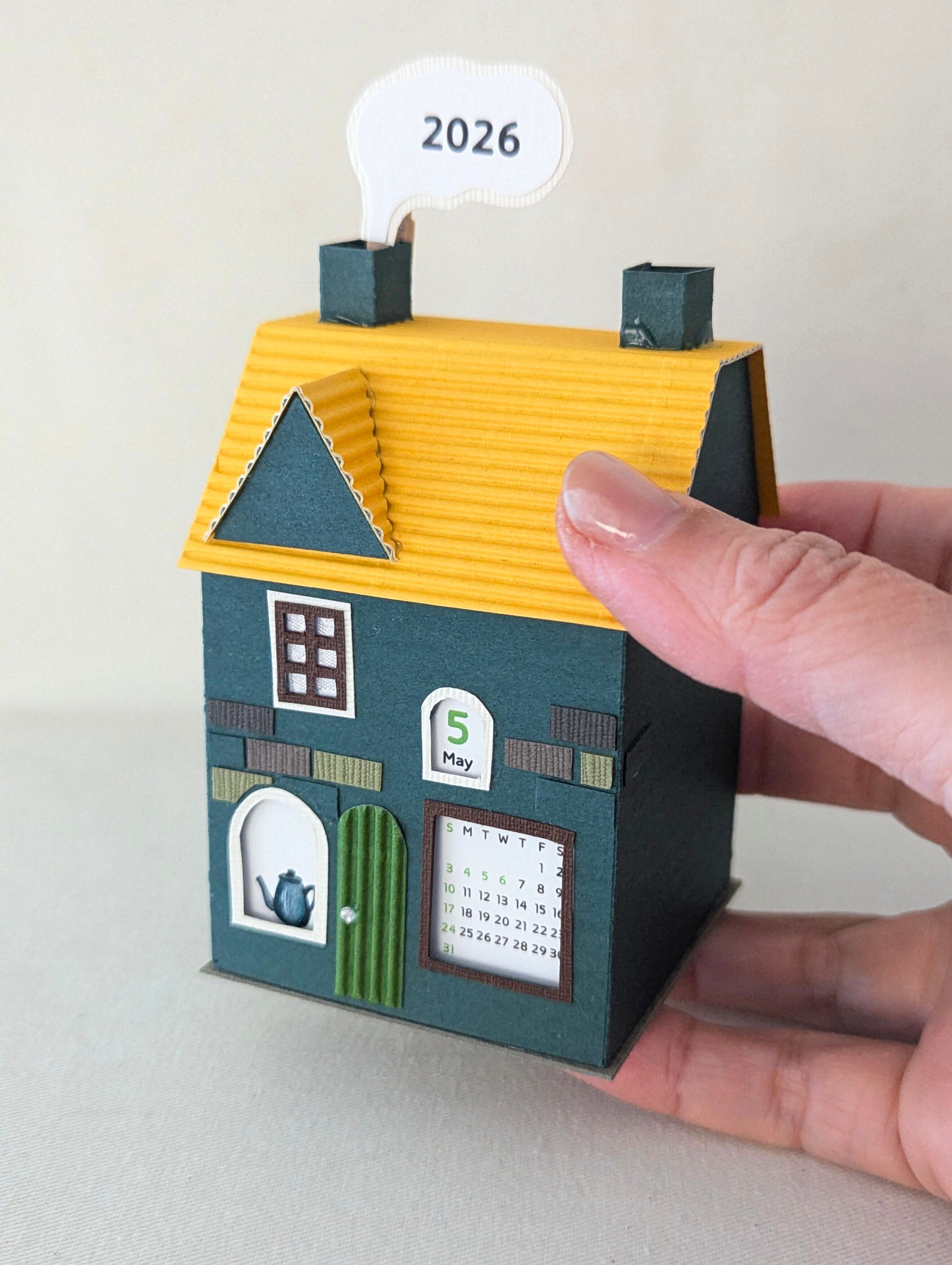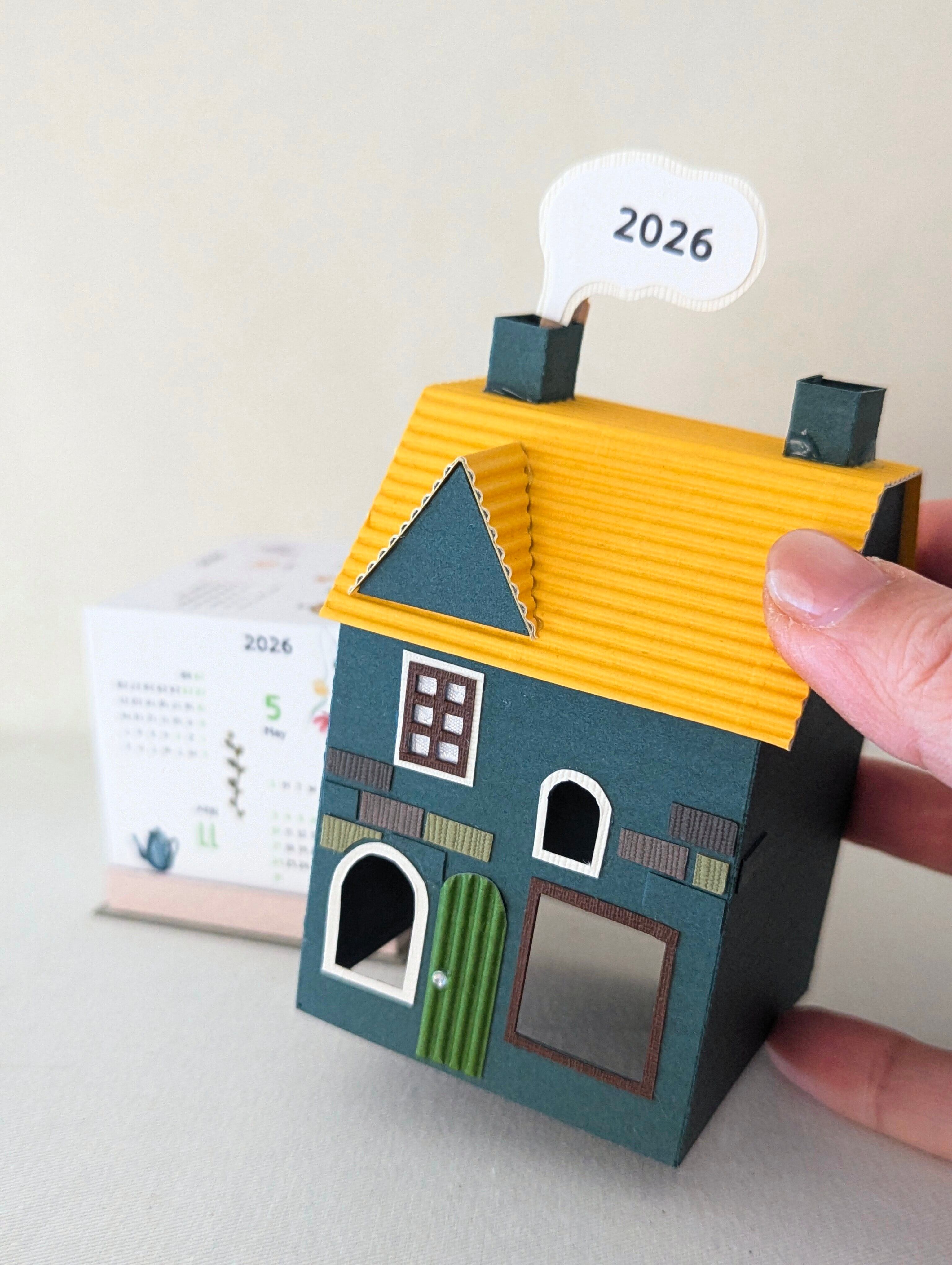 小さな街のペーパークラフトカレンダー2026〜選べる3種のミニハウス〜 緑-Cタイプ